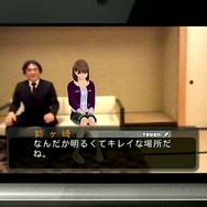 そして『NEWラブプラス』では写真撮影機能も搭載されています。現在配信中の体験版でも写真撮影を楽しむことが出来ますが、製品版では更なる機能が盛り込まれています。3DSを覗くと、そこには岩田社長の隣に座る寧々さんの姿がありました。ここでシャッターを切ることで記念写真を撮ることが出来るというもの。