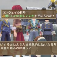そして、『テイルズ オブ』シリーズではおなじみの“称号”が、イノセンス アールに登場。ストーリーを進めたり、サブイベントを攻略することで様々な称号が手に入ります。称号を設定するとステータスが上がったり、キャラクターの見た目・服装が変化したり、戦闘終了後のかけあいが変化したりするので、メニュー画面の「装備」から忘れずに設定しておきましょう。