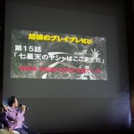 次は初公開となる15話をプレイ。ストーリーも怒涛の展開で進んでおり、ここでアスラとライバル関係のヤシャが登場。会場では実際にヤシャを操作してプレイしている様子が披露されました。さらにヤシャは仲間になるもう一人の主人公でもあり、ヤシャの物語を描いたストーリーも用意されているそうです。気になる内容は製品版までのお楽しみと言うことで、ここでは戦いを中心に紹介されました。