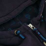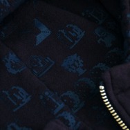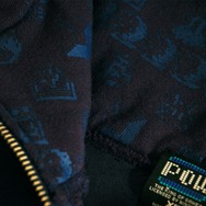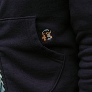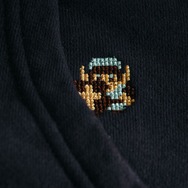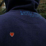 ポケット口にボディカラーによって色が違うリンクがドット絵で描かれており、バックには「ハートの器」のクロスステッチが施されています。さらに、フードの中には『ゼルダの伝説』シリーズお馴染みの敵キャラクターがコッソリプリント。カラーバリエーションは、ボルドーとネイビーの2色となっています。