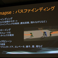 オートデスクではローレベルAIを提供する自社開発のミドルウェアを「Kynapse」という名前で既に提供しています。こちらは多数のキャラクターが存在する環境下でのパスファインディングを中心に空間認識やキャラクター同士のコーディネーションなどローレベルな機能を提供し、多数の採用実績がありますが、個々のキャラクターに知能付をするようなハイレベルなAIの実現はサポートしていませんでした。