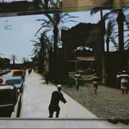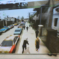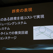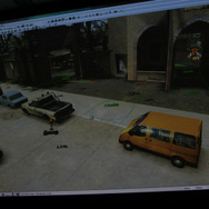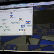 会場ではUDK(Unreal Engine)を使ってデモが行われました。フローは環境に○や□で定義付けられていて、キャラクターはそれに沿って動くようになります。道路や空間に対してフローを設定しキャラクターの動く場所を定義し、特定の場所でキャラクターに特定の動作をされるためのアクションステージを設定することもできます。デモでは、ATMの前にアクションステージを設定し、そこを通ったキャラクターがお金を下ろす動作を行う様子が確認できました。これらは個々のキャラクターにAIを当てるのではなく、環境に動きを定義することから軽い動作で実現できます。