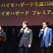 後半は、前半の重厚でドラマティックな『バイオハザード』の世界観とはうってかわってカジュアルに。ファンクラブのTシャツを着た、総合プロデューサーの小林裕幸氏と、『バイオハザード リベレーションズ』プロデューサーの川田将央氏が登場。さらにバイオハザード15周年応援リーダーの紗綾さんを交えて、ファンからの質問や抽選会などのファンイベントが和やかに行われました。