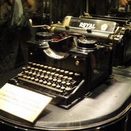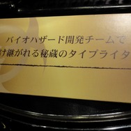 会場ロビーでは、シリーズ歴代のグッズや15周年グッズが展示されていました。なかでも目を引くのは『バイオハザード』開発チームで受け継がれる“秘蔵のタイプライター”。本編でのタイプライターによるセーブシステムでお馴染みですよね。