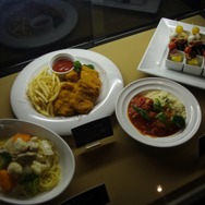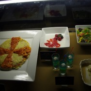 休憩タイムに入るとブッフェスタイルの食事でホッと一息。しかしながらBGMはもちろん『バイオハザード』です。ホラーゲームのミュージックをバックに食事をするというミスマッチに、思わずクスリときてしまいます。