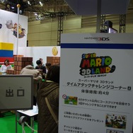 会場では他にも『スーパーマリオ3Dランド』の試遊コーナーや、1-1のタイムを競う「タイムアタックチャレンジ」も行われており、初日の最速タイムは34カウントでした。皆さん、お手元の3DSでぜひ挑戦してみてください。