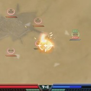 「対艦戦」の場合、戦艦は通常のMS部隊とは異なる固定のAIコマンド「艦砲」と「連射」を持っています。「艦砲」は標的をターゲットに艦砲射撃を行います。敵の機体数が少ない場合に有効です。「連射」は艦砲を広範囲に乱射し、威嚇射撃を行います。こちらは敵の数が多い場合、もしくは機敏な敵がいる場合に有効です。