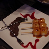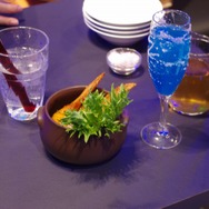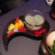 また「調合ハーブカクテル」「T-ウイルスワクチン」(ブルーキュラソー)や「G-ウイルスワクチン」(ストロベリーベース)など、『バイオハザード』ファンのツボを押さえたドリンクメニューが素敵。「調合ハーブカクテル」はゲームのように自分でハーブ量を調整して飲むという遊び要素も。全部入れると真っ黒になるので、調合の際は注意してください。