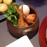 インサイド編集部オススメは『逆転裁判』オリジナルメニューとなる「そのソースに異議あり! オニオンリング~裁判長の木槌コロッケ付き~」です。良く見ると、サイバンチョの木槌が置いてあり、3種類のソースを付けながら食べます。見た目もインパクトがあり、みんなでつまみながら食べるのに良さそうな一品。価格も手頃なのがいいですね。