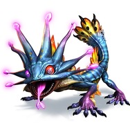 ファフニールは「奪龍」の異名を持つ巨大モンスター。ある爬虫類の一種のようにも見えるが、王立学会の見解では、元々は竜族に近い生物だったと推測されています。また、ヒャハニールは、ファフニールよりも、さらに爬虫類に近くなった亜種だとされています。