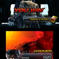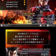 「鉄拳カード」は、「鉄拳カード」を鑑賞したり、すれちがい通信でカード交換ができるモード。カードは初代『鉄拳』から『鉄拳 タッグトーナメント2』までの歴代『鉄拳』シリーズのキャラクター画像やイラスト、映画「鉄拳ブラッド・ベンジェンス」の1シーンを切り出したもので、総数700枚以上が3Dで鑑賞できます。交換方法は、あらかじめ「鉄拳カード」を3枚セットしておき、すれちがった相手とその3枚を交換するという形になります。すれちがいカードリストに溜まった「鉄拳カード」は「CP」を消費して入手できます。