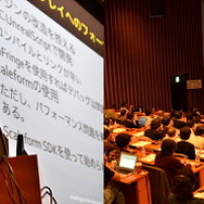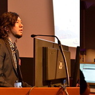 二日目の後半からは、日本でのアンリアル・エンジンを使用したゲーム開発を行なっているライセンシー2社による事例紹介が行われました。最初の株式会社イニスのレベルデザインマネージャー 乳井氏と、コア・ミドルウェア・テクノロジー・マネージャー David Ventura氏がそれぞれ登壇しました。イニスは「押忍!闘え!応援団」や「Lips」で知られる開発会社ですが、アンリアル・エンジン3を使用して「ブラック・アイド・ピーズ・エクスペリエンス」を開発しました。イニスによるセッションは「Teaching the Unreal Engine to Dance(アンリアル・エンジンにダンスを教える)」と題され、「血しぶきとチェーンソー」で知られるゲームエンジンにどうやって「リズムとヒップ・ホップ」を組み込んだのか、その経験が紹介されました。