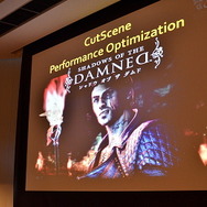 まず最初にGajentaan氏から、アンリアル・エンジン3上でカットシーンを制作する経験からGhMが学んだことについて話がありました。Gajentaan氏は、すべてのプラットフォームでハイレベルなパフォーマンスを確保するため、動的な光源や半透明なマテリアル、インストラクション・カウントの多いマテリアルといった「重い」アセットを可能な限り減らすことが重要だと強調しました。同時に、それらの重いアセットを避けながら、ビジュアルクオリティを大きく悪化させないためのGhMならではのノウハウについても紹介がありました。