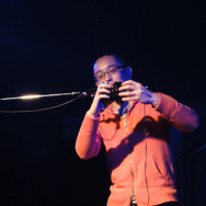 トップバッターとして颯爽と登場したのはDSソフト『KORG M01』やiPhoneアプリを使った“ひとり”ファンクユニット「サイモンガー・モバイル」。その“ひとり”であるサイモンガーさんは、通販好きな奥様が買った棚が非常に不安定だった、という日常の些細な出来事から「不安定な棚」という曲を作りだしたと言います。