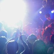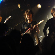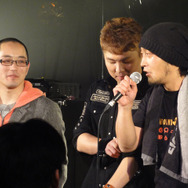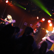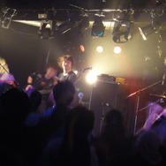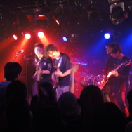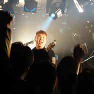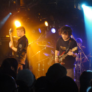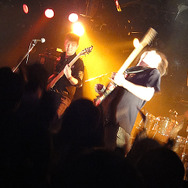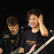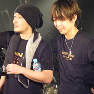 始るやいなや、ビートが心臓を揺らすほどの爆音サウンド。その突出したテンションの上がりに最前列のファンも身を乗り出し、それに答えるように岡宮さんも舞台スレスレで圧倒的なギタープレイを披露。この近さやアツさはライブハウスならではで、途中のMCでも植松氏は「日本のファンもだいぶ変わってきて、こうして素直に盛り上がってくれるのが嬉しい」と語ります。