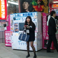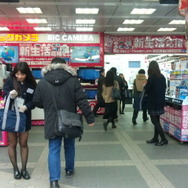 有楽町ビックカメラでは、『NEWラブプラス』発売記念イベントの一環として、「ARチョコカード」が配布されました。平日の昼とあって、サラリーマンや年配の方が多い様子。ふいに女子高生にチョコ(?)渡され、驚いた方は多そうです。