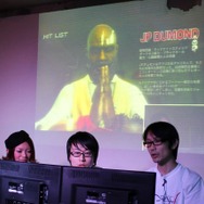 まずはガッチマン氏から『ダークネス2』における、オンラインのマルチプレイモード「Vendetta」について解説がおこなわれました。「Vendetta」モードは全く異なる操作タイプと特殊能力をもったイヌガミ、ショーシャナ、ジミー・ウィルソン、J.P.デュモンといった4人が活躍する、ストーリーの裏側を描いたものです。