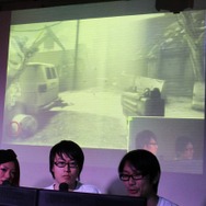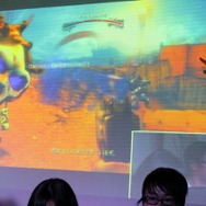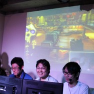続いて、ユーザーを交えたマルチプレイがスタートします。1組目はせんとす氏と女性1名、男性2名が参加。ガッチマン氏による解説を受けてやる気満々のせんとす氏でしたが、光のポイントがなかなか破壊できない、道に迷う、敵と味方を間違えて攻撃するといった散々な結果に。一方、ユーザーは特殊武器での攻撃を決めて周囲から大きな歓声を受けます。ボスとの戦闘では戦闘不能者もでましたが、マルチプレイでは他のプレイヤーによる「蘇生」がおこなえるため、協力しながら無事にクリアできました。