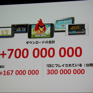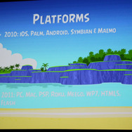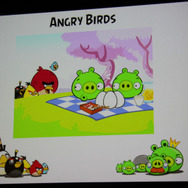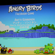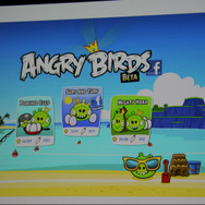 「『Angry Birds』は色々なプラットフォームで出したいと考えていて、例えば会場にある自動販売機でも、十分なCPUとディスプレイがあれば移植したいですね(笑)」ということで、iOSからスタート、Android、Symbian、Maemoといったスマートフォンは当然のこと、PC、Mac、Roku、Meego、Windows Phone、HTML5、PSPなど出ていないプラットフォームを探すのが難しいくらい。そしていよいよFacebookでも提供開始されました。