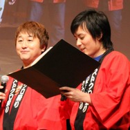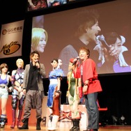 スペシャルステージには、大会実行委員長であるバンダイナムコゲームスの原田勝弘プロデューサーと、カプコンの小野義徳プロデューサーが登場。完成までの苦労は簡単に言い切れないほどあるという両氏ですが、まずは3月8日に発売を控え、これまで発表された商品の情報について解説していきます。