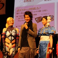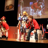 続いてアシスタントプロデューサーである綾野智章氏、公式サイト上で実施された「MissストクロCOLLECTION オーディション」の優勝者である「Missストクロ」のMiss春麗の粕谷奈美さん、Missキャミィの藤田薫子さん、Missニーナの大塚莉奈さん、Miss飛鳥の伊藤桃さん、さらにMissストクロの応援隊長に就任した、テレビ・雑誌で活躍中のモデル・JOYさんがゲストとして登場しました。