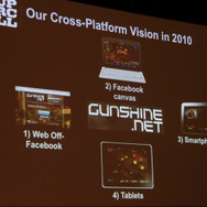 また、Supercellではクロスプラットフォームも重要なテーマとして掲げていました。Facebookだけでなく、ウェブ(自社のGunshine.netでの提供)、スマートフォン、そしてタブレットという4つのデバイス・プラットフォームでの提提供です。
