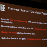 さらにダメだった点としてはタブレットやスマートフォンでのサービスが未だにスタートしていないということを挙げました。というのも、ポイント&クリックで遊ぶMMORPGのUIはタッチインターフェイスには全く適合せず、ユーザーテストでも酷評を受けてしまったからです。同社ではGunshine.netの移植を諦め、"タッチファースト"で新たなゲームの構築を進めています。「タッチ、特にタブレットはPCとは根本的に異なるデバイスです。単なるポートでは満足行くものができるはずがなかった」