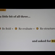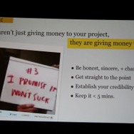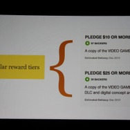 Au氏は「ゲームは非常に良いカテゴリで集まる金額も多い傾向にある」とコメント。平均的なユーザーは1つのプロジェクトに42ドルを投資するそうです。これはパッケージゲームの価格とそう変わらない数字で、デベロッパーにとっては非常に魅力的な資金源となります。またAu氏は金額が高いため、特典の設定を適切にすることや、映像で自分たちを表現することが重要になっていると述べていました。開発プロセスも公開して一緒につくり上げるという形が求められそうです。