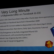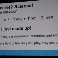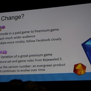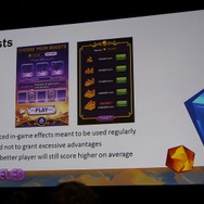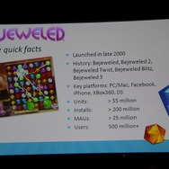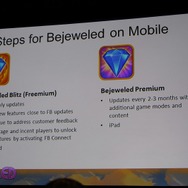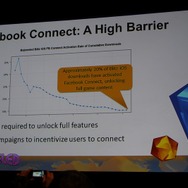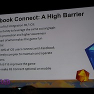 ちなみに『Bejeweld Blitz』にはFacebookとの連携がオプションとして用意されていて、連携するとFacebookの友達とスコアを競うことができます。しかしContestabile氏によれば連携率は僅か20%に留まっているとのこと。連携はソーシャルグラフが利用できるようになるという利点もありますが、ユーザーにとっては難しくメンテナンスも難しく悩みの種になるとのことでした。