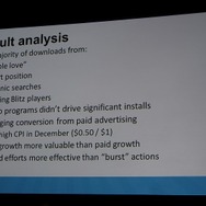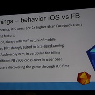 Contestabile氏はこの差について、「いつでも遊べるという環境の違いが大きいのではないか」と指摘。「当社の調べではトイレでゲームをする人は非常に多い、大きなビジネスチャンスがある」と冗談を飛ばしていました。また、短いプレイ時間を積み重ねられる「Blitz」とモバイルの相性が良いこと、アップルの課金システムが整備されていることなども要因に挙げられました。