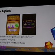 ちなみに「パズルゲームの課金って?」と思われる方も多いかもしれません。『Bejeweled』で販売しているのは、得点増加など様々な効果をもたらす「ブースト」、召喚獣のようなキャラが助太刀してくれる「レア ジェムス」、これらのアイテムをランダムで獲得できるスロットに挑戦できる「デイリースピン」で、数十セントという安価で購入できるものだということです。広く薄く課金するという方法です。