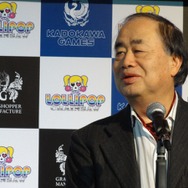 角川ゲームス代表取締役社長・安田善巳氏は開発してきた3年間を振り返り、「途中主人公ジュリエットのチアの動きが上手く行かずプロジェクト自体の危機に陥った」と語ります。全世界におくるエンターテイメントとして、新しい試みをするには困難もあったようです。これを受けて登場したのは本作を見事発売までにおくりだしたグラスホッパー・マニファクチャCEO・須田剛一氏。GDEから帰ってきたばかりの須田氏からは、サンフランシスコやボストンでお披露目となる、本作の宣伝バスについて語られました。