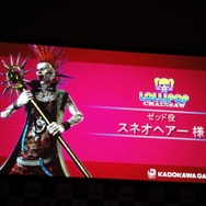 ボスの声優も豪華です。今回のパーティーにはゼッド役のスネオヘアーさんとジョーズィー役のROLLYさんがかけつけてくれました。2人とも声優は初めてでオファーには驚いたそうです。スネオヘアーさんは赤いモヒカンのゼッドを見て、「カッコイイ。僕もこういうミュージシャンになりたかった」と語ったあと、昔似たようなヘアスタイルにしたことがあるけど仕事先の店長に怒られたというエピソードを明かしてくれました。そして収録の際には「普段言わないような過激な台詞ばかりで、本当に発売できるかなと思っていた」そうです。