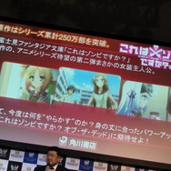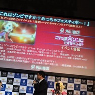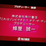 会場には「これはゾンビですか? オブ・ザ・デッド」ハルナの姿が。一緒に登場した角川書店プロデューサー・蜂屋誠一氏は「ハルナ姿のジュリエットを今日実際に映像で見てみたら、ムッチムチでいいですね!」とハルナコスのジュリエットも気に入った様子でした。