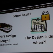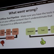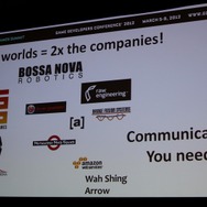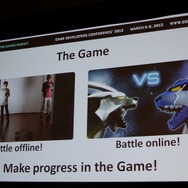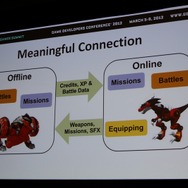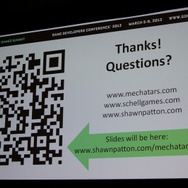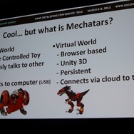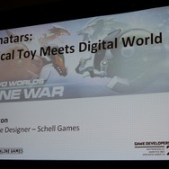 Bossa Nova Roboticsというカーネギーメロン大学のロボット工学研究所から生まれた学内ベンチャーと、ゲームデベロッパーのSchell Gamesが共同で開発。25分のミニセッションでは、Schell GamesのShawn Patton氏が「Mechatars: Physical Toy Meets Digital World」と題したポストモーテムを行いました。