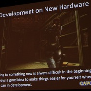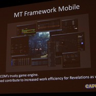 新ハードの開発はいつも大変ですが、新開発の「MT Framework Mobile」が開発効率の向上に大きく寄与したとのこと。「MT Framework Mobile」は家庭用ゲーム機で利用しているものとは全く異なる完全に携帯ゲーム機向けのエンジンだそうです。ただし、『5』のメンバーも多かったということで「MT Framework」に慣れたメンバーの存在は有効だったそうです。また、今回の開発では外注も積極的に使われましたが、外部スタッフにも同じ環境が提供され、それも効率化に貢献したとのこと。