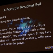 『バイオハザード リベレーションズ』は先に発売された『バイオハザード ザ・マーセナリーズ3D』と同時に開発が進められた作品で、ニンテンドー3DSという「魅力的な製品が登場したことが開発のきっかけ」だそうです。また、長い歴史がある『バイオハザード』に新しい広がりを持たすことも3DSでの開発を決断した理由になっているそうです。