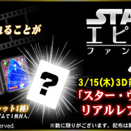 KONAMIは、3月15日(木)の前夜祭より全国で封切予定の映画「スター・ウォーズ エピソードI/ファントム・メナス 3D」の公開を記念して、上演映画館でソーシャルゲーム『スター・ウォーズ コレクション』で使える限定リアルレアカードを先着20万名に配布するします。