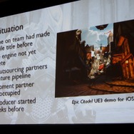 『Infinity Blade』はChAIRが初めて取り組んだ(全てのメンバーにとっても初めて)モバイル向けゲームで、かつモバイルの「Unreal Engine 3」の威力を世界に見せつけるもので、さらに面白いゲームである必要がありました。しかし当初『Project Sword』と呼ばれた企画が立ち上がったのは2010年6月。エンジンも開発途上で、本社のEpicは『Gears of War 3』などで忙殺されていて協力は期待できず「しかも年末には発売しなきゃいけない、こりゃ最高にヤバイ状況だなって思いました」(Hurley氏)。