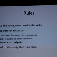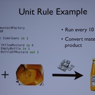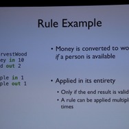 最後に「ルール」はリソースの相互作用/変換を定めた式です。Input(入力)とOutput(出力)があります。例えば「人」がいれば「資金」は「木」に変えることができます(植樹?)。