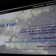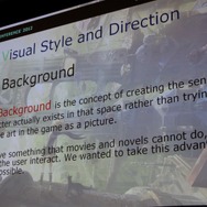 この発売されたばかりの作品について、主にビジュアル面からアートディレクターを務めたSCEジャパンスタジオの山口由晃氏が「Bringing the Visuals of Gravity Rush to PlayStation Vita」(米国でのタイトルがGravity Rush)と題した講演を行いました。