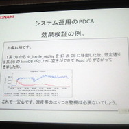 また質疑応答ではクラウドサーバとの兼ね合いが議論されました。前述のインフラ推移を見ればわかるように、『ドラコレ』も当初はクラウドサーバで行われていましたが、途中からパートナー企業のデータセンターの活用が加わり、今ではそちらを中心に運用を切り替えているそうです。ソーシャルゲームでは事前のヒット予測が難しいため、初期の拡張時にはクラウドサーバの活用が有効だが、安定期以降はより痒いところに手が届く、自社サーバやデータセンターの活用も有効ではないか、と話されていました。