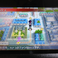 開演前から非常に和やかなムードが流れるなか、みなさんが楽しんでいるのは『リズム怪盗R』のすれ違い通信です。すれ違うと自分のパリ街に人がやってきて、その人は自分とすれ違った相手のどちらのファンになるか悩んでいるご様子。そこで50のリズムゲームからランダムで選ばれたもので相手のスコアを上回ると、その人が自分のファンになり自分の街に住み着いてくれるようになる仕様となっています。