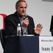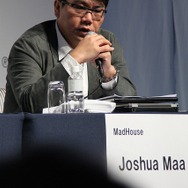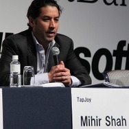 登壇者はグリーで広告事業本部長を務める浅沼達平氏、米国を中心にスマートフォン向けアドネットワークを運営するMillenium Mediaのシニアバイスプレジデント ビジネスデベロップメント担当のIssac Babbs氏、そしてTapJoyのMihir Shah社長兼CEO、さらに中国で広告事業を展開するMadhouseの創業者でありCEOのJoshua Maa氏です。