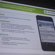 グリーの『Zombie Jombie』の海外展開に当たっては、Millemiumのネットワークを活用して、カナダ・ニュージーランド・オーストラリアという英語圏の3カ国でテストマーケティングを実施。実際の米国ロンチではリッチメディア(動画)を活用し、高いコンバージョンレートを実現したとのこと。また、非常に規模の大きなCPC広告を実施したとのこと。