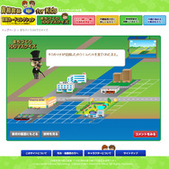 何もない土地にまちを作っていくクイズゲームです。区画を指定すると、政治・経済に関する2択の常識クイズが出題され、正解すると街の施設を設置することができます。施設も3つの内から相応しいものを選んでいくことになり、全てのマスを埋めた際にバランスの良い街になるように設置していく必要があるようです。