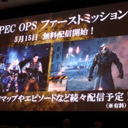 続いて「SPEC OPS エコーシックス」が主役となるキャンペーンモードの配信が発表となり、開発スタッフによる実機デモンストレーションがおこなわれました。プロローグとなる「SPEC OPS ファーストミッション」は5月15日より無料配信され、有料を含めて順次追加配信を予定しているとのことです。