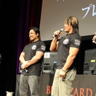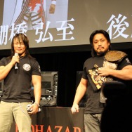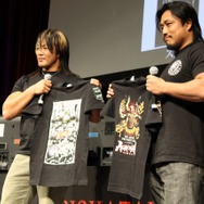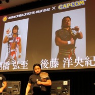 さらに、今年40歳になったという萩原氏と、今年40周年を迎えるという新日本プロレスといった意外なコラボレーションも発表され、会場には後藤洋央紀選手と棚橋弘至選手がゲストとして登場しました。両者による『バイオハザード オペレーション・ラクーンシティ』、『アスラズ ラース』『STREET FIGHTER X 鉄拳』といった3種類のコラボTシャツは、5月3日ごろに発売開始予定となっています。