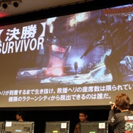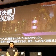 この雪辱を晴らすため、両選手も参加したプレス対抗戦では、2つのチームが獲得ポイントを競い合う「TEAM ATTACK」、続いてマップ上に配置された「G-ウィルス」のサンプルを回収する「BIOHAZARD」、決勝戦では救援ヘリが到着するまで生き抜く「SURVIVOR」モードでのバトルが繰り広げられました。