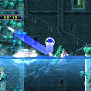 水中のタッグアクション。「テイルス」のしっぽをスクリューのように回転させて進みます。「テイルス」の協力によって、「ソニック」の苦手な水中移動もついに克服。